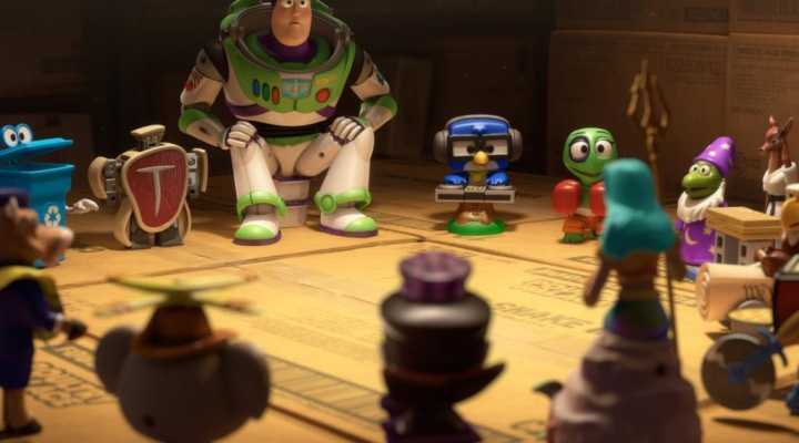История о том, как игрушечного космонавта Базза берет в заложники его миниатюрная копия. Согласно сюжету, уменьшенная версия Базза прилагалась в качестве бонуса к детским обедам в некой закусочной.