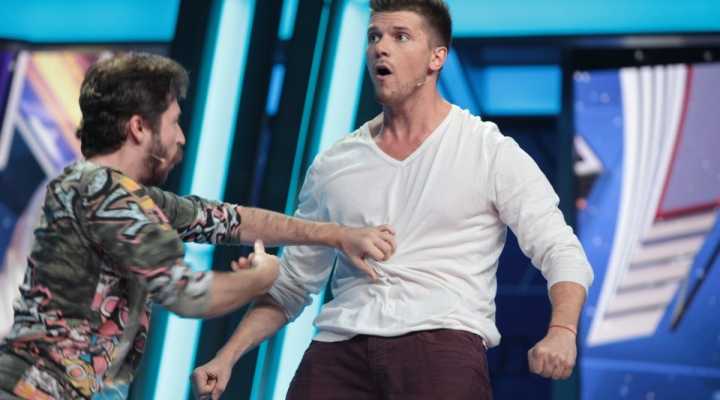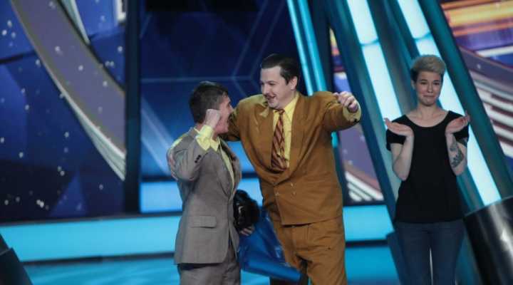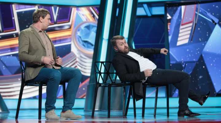 Юмор рождается на сцене, которая, кажется, сама решает, кто достоин на ней стоять. Если выступление участнику не удается, пол под его ногами наклоняется вперед. Сначала немного, но вот еще одна шутка не прошла, и угол становится круче, а после очередной неудачи голова занята совсем не смешными мыслями — удержаться бы. И это не единственный технический сюрприз, который ждет претендентов на победу: за плохие шутки участники получают по пятой точке специальной механической «лапой».