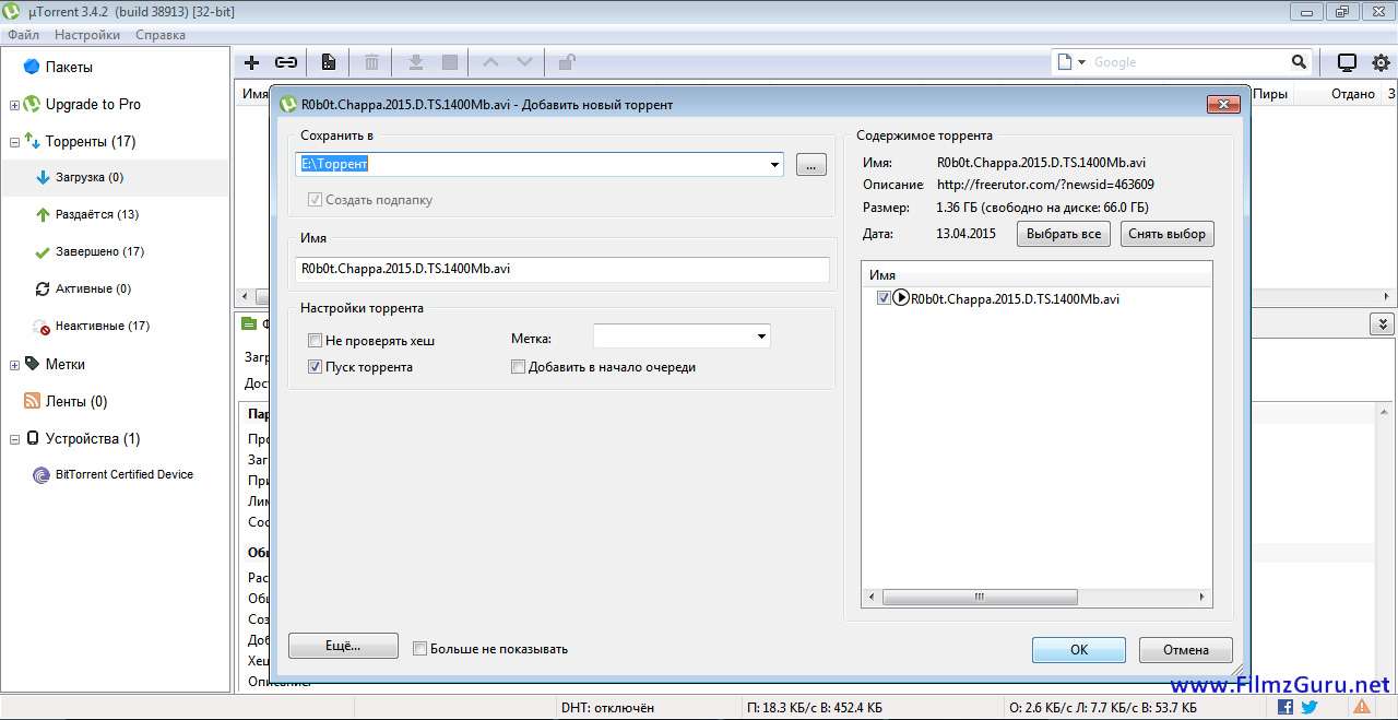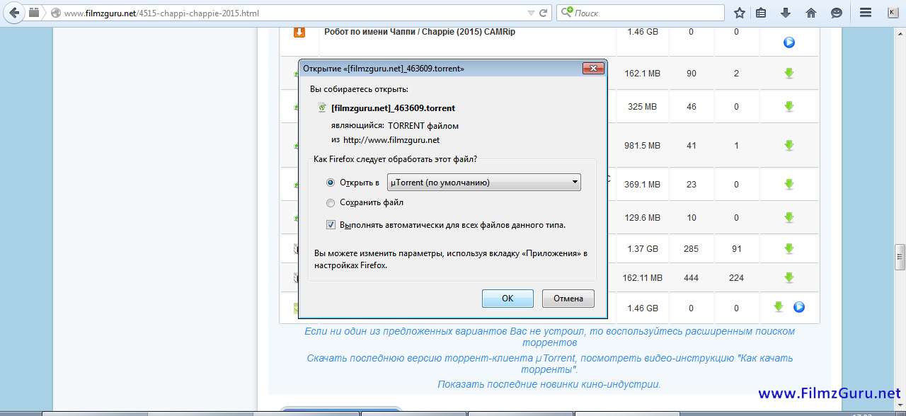 5. В открывшемся окне нажимайте "Ok" и Вы запустите торрент-файл в Вашем торрент-клиенте µTorrent или встроенном в Ваш браузер, или другом торрент-клиенте.